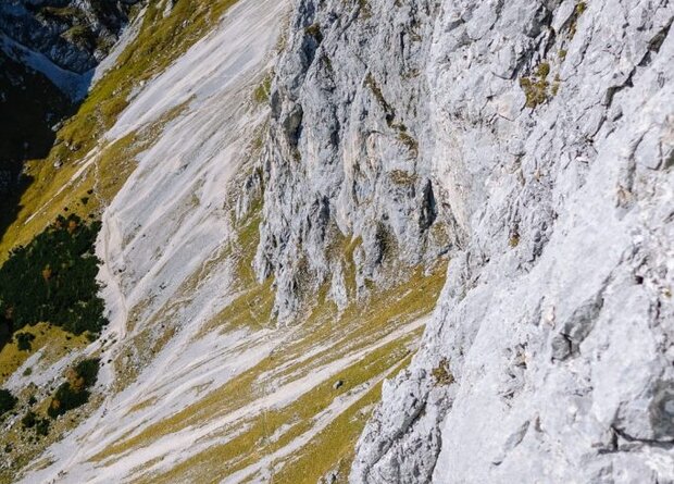 Da hat die Bergrettung Tannheim ganze Arbeit geleistet: 2010 wurde dieses feine Stück Fels eingebohrt, in bequemen 10 Minuten von der Bergstation erreichbar. Von 5a bis 7b reichen die Schwierigkeiten, da sollte für jeden was dabei sein. Danke, Bergrettung!