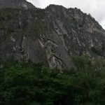 Kurz vor dem Einstieg zur Burschlwand gibts einen Gratis-Parkplatz und eine große Übersichtskarte der Topos. Wir entscheiden uns für die Route Mon Cherie 6a+ mit 6 Seillängen.