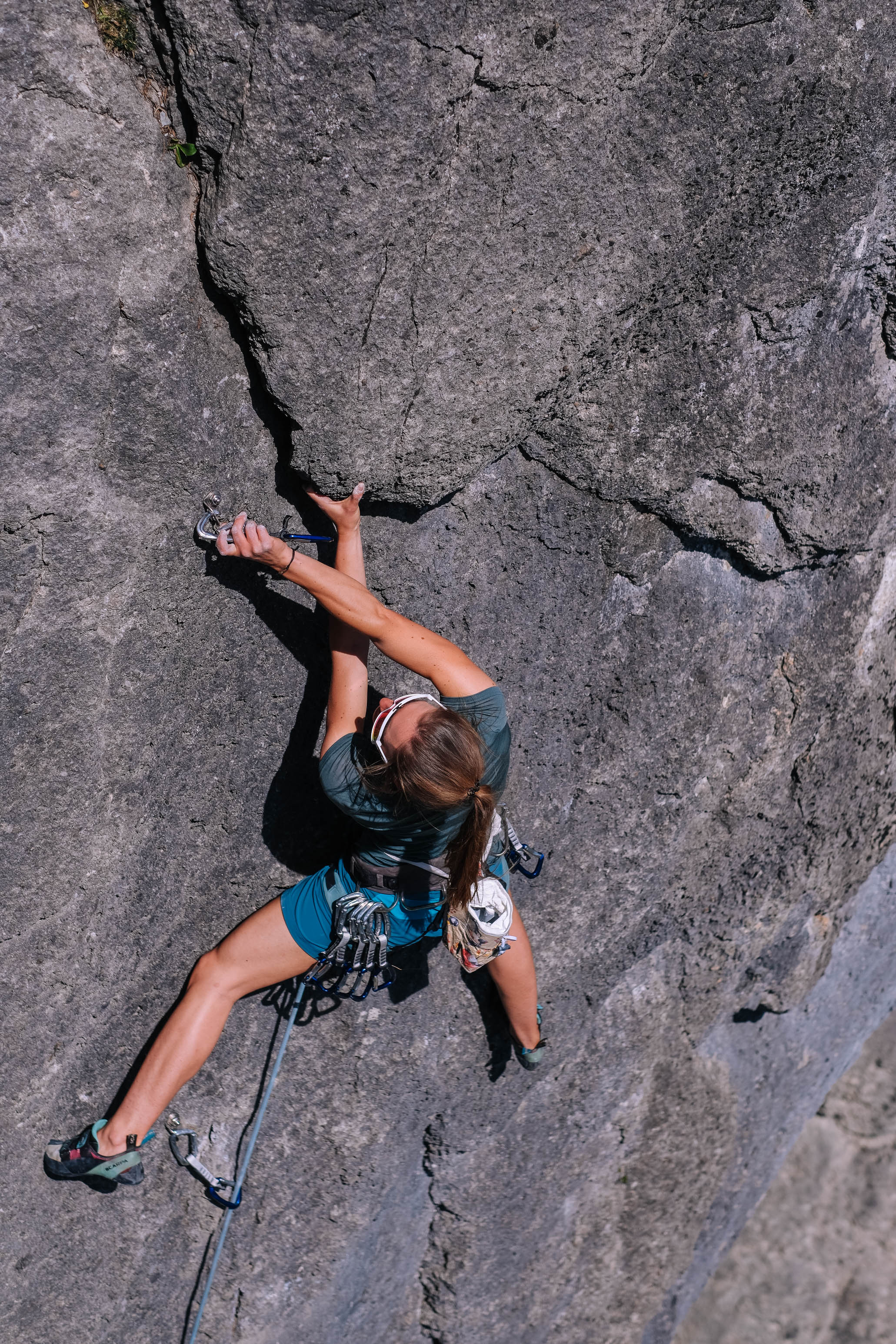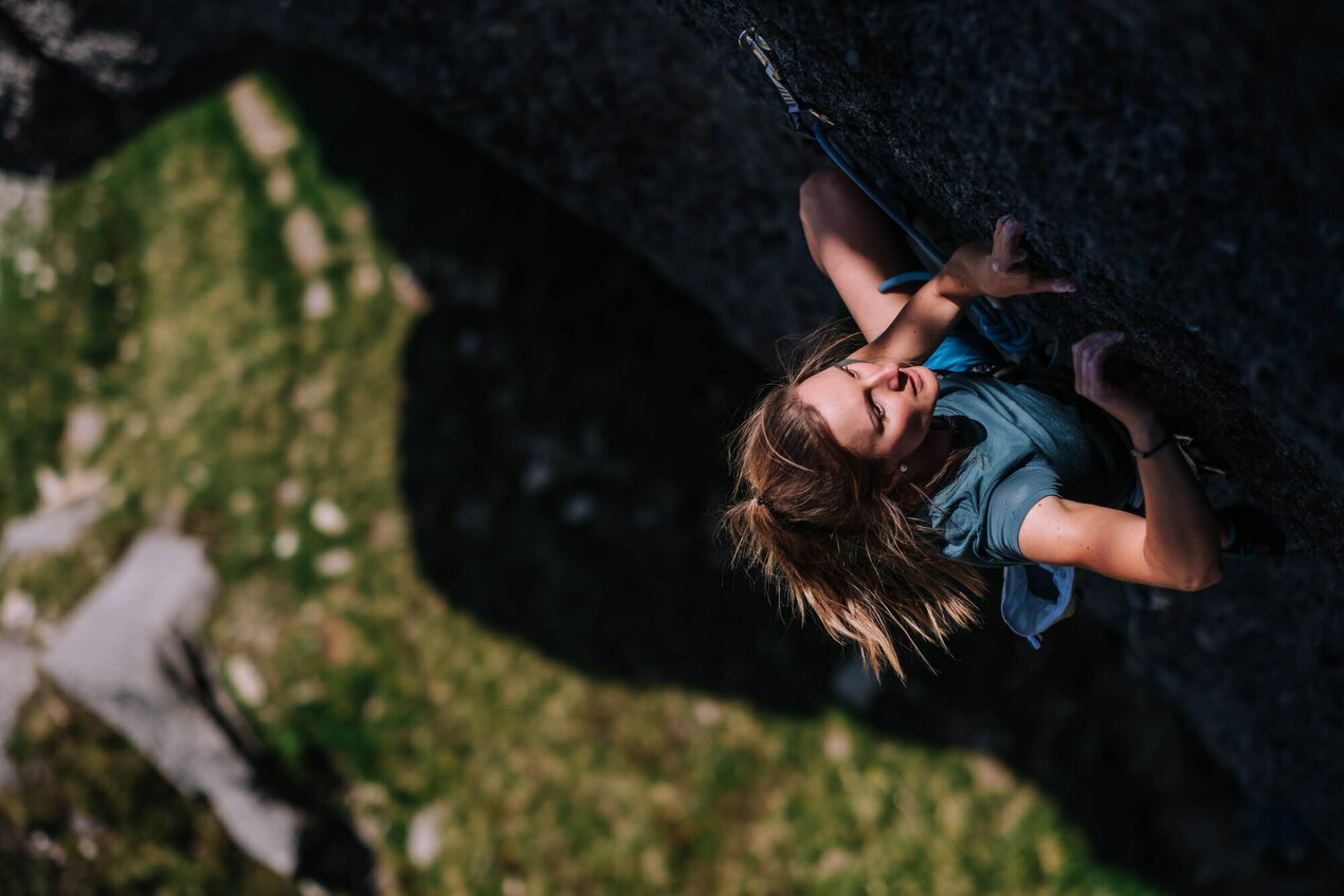 „Da herobn stimmt einfach das Gesamtpaket“, schwärmt Ramona, während sie ihre Ausrüstung für die Aufwärmroute im Sektor Felswurm sortiert. „Da kann i sogar meine Eltern mit auffa nehmen!“