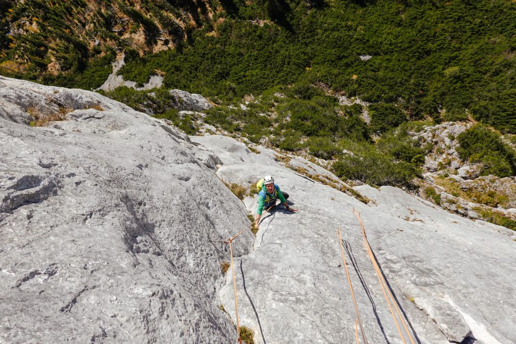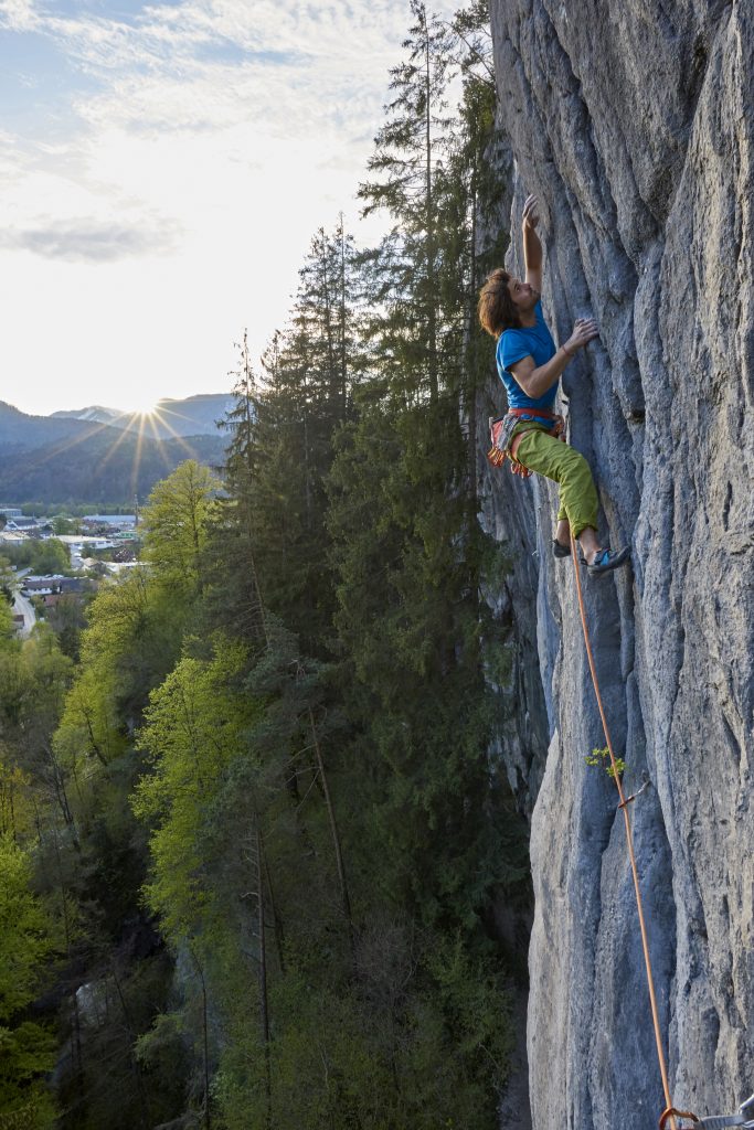 Gerade die Mehrseillängen um die majestätische Rote Flüh, den Gimpel und die Zwerchwand sind wunderbar südseitig ausgerichtet und deshalb ideal für den Frühling, sobald der Schnee weggeschmolzen ist. Ab Ende April hat dann auch das Gimpelhaus geöffnet, das perfekte vorgeschobene Basislager am Fuße der Wände.