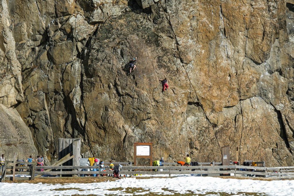Und wenn die Sonnenplatten nicht genug sind, dann hat die Olympiaregion Seefeld noch vieles mehr in der Tasche: Die legendäre Chinesische Mauer, ein ebenfalls südseitig ausgerichteter Kalkriegel, bietet die mitunter lohnendsten Routen in Tirol, hier werden vor allem die Hardmover Spaß haben. Gemütlicher geht es im Mauerbogen zur Sache, von den 30 Routen sind viele im 6. Grad und bieten nach dem ersten Stand nach oben hin noch ein paar schwerere Meter zur „Draufgabe“.
