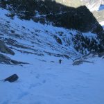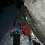 Für das heutige Unternehmen haben wir aber unsere Skier gezwungener Maßen wegen Schneemangels zu Hause gelassen, anderseits aber auch wegen der zu erwartenden Schwierigkeiten. Unser Ziel ist der Nordwandgully, der erst kürzlich von Simon Messner und Philipp Brugger erstbegangen wurde. Die gesamte Tour über den Gipfel und wieder hinunter zum Ausgangspunkt erfordert gute Kondition und alpinistisches Können. Je nach Verhältnisse, sollten schon ca. 12 Stunden eingeplant werden, denn die kalten Nächte laden nicht gerade zum Notbiwakieren ein.