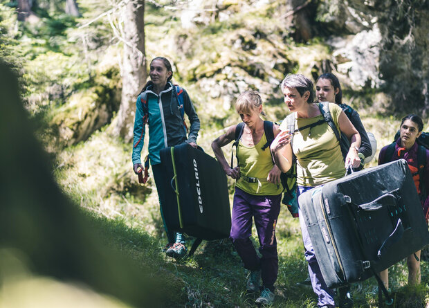 Und wenn es mal regnen sollte, dann geht es entweder in die Kletterhalle nach Imst, in der auch Kletterprofis wie Angela Eiter ihre Routen ziehen, nach Karrösten in die Boulderhalle, oder aber in die nagelneue Steinblock Boulderhalle.