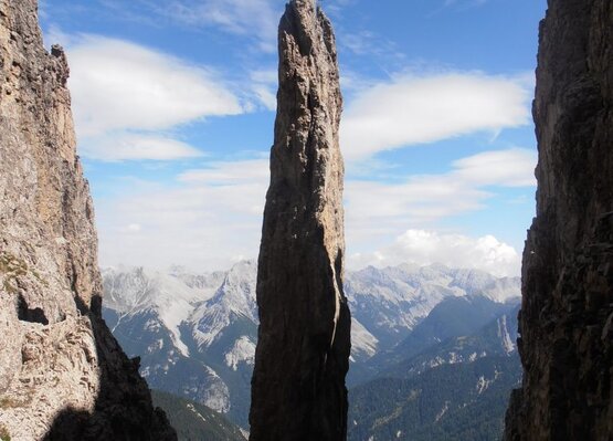 Lukas Wimmer on the summit pin: I have often seen photos of this unique rock needle in the Karwendel, more precisely in the Olympiaregion…