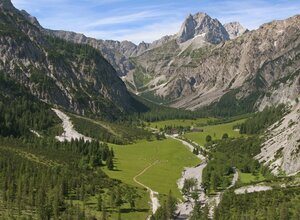 By regional bus to the toll station at the entrance to the Karwendel valleys in Pertisau (exit bus-stop: Pertisau Karwendeltäler). Or by car or MTB/E-Bike to the Gramai Alm. From Pertisau at the beginning of the Nature Park Karwendel, a toll road leads to the Gramai Alm (open until 9 November 2025).