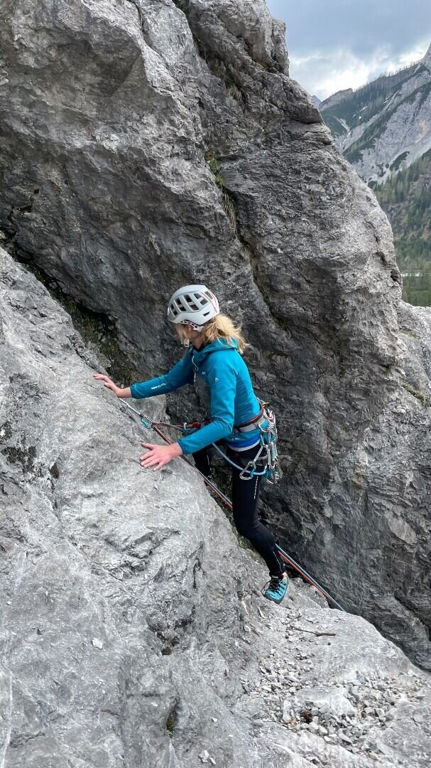 The route was established in 2012 by Georg Wimmer and Max Schneider. Although it is protected with 136 pitons, it’s not a plaisir climb. In addition, it is compulsory to climb the grade 3 approach without ropes - in case of a bail also on descending!
