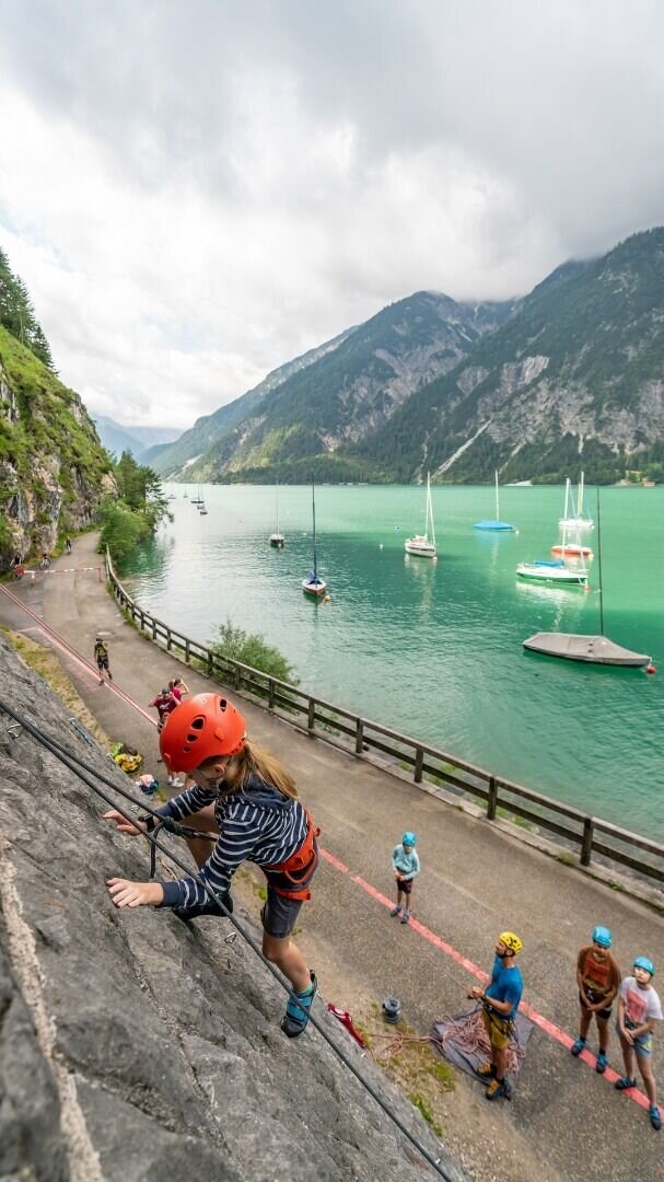 Located directly on the shores of Lake Achensee: 20 routes (9–18 metres) – ideal for beginners and child-friendly.