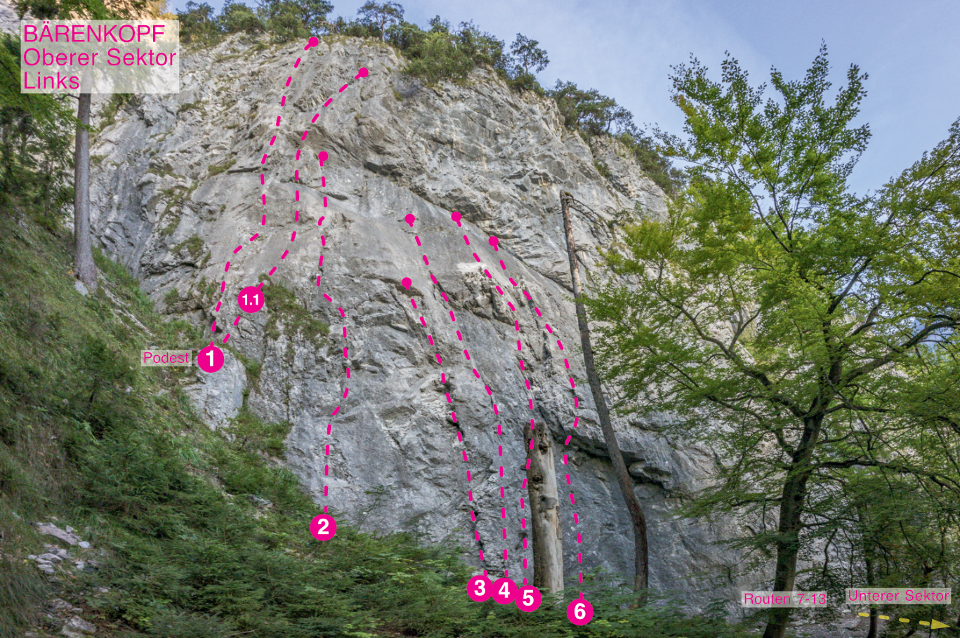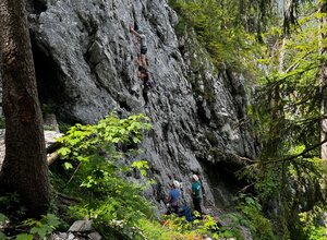 The climbing crag has undergone a major upgrade, thanks to the excellent renovation work by Andreas and Thomas Nothdurfter. The 24 sport climbing routes are now well-secured and thoroughly cleaned. With closely spaced bolts, good quality rock and a variety of routes ranging from 4+ to 7a+, this climbing crag is well worth a visit.