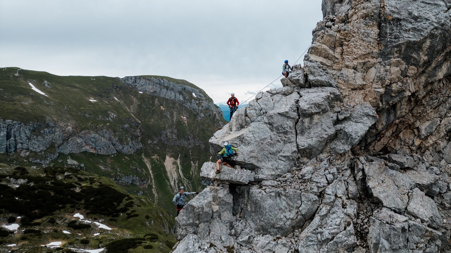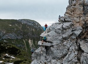 The 5-summit via ferrata in the Rofan mountains offers steep ferrata passages and hiking sections over a length of 2km. It connects 5 peaks with routes of varying difficulty.