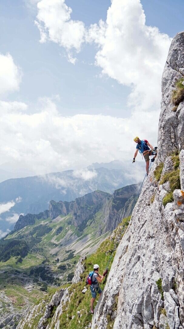 The Achensee 5-summit via ferrata offers steep ferrata passages and hiking sections over a length of 2km. It connects 5 peaks with routes of varying difficulty.