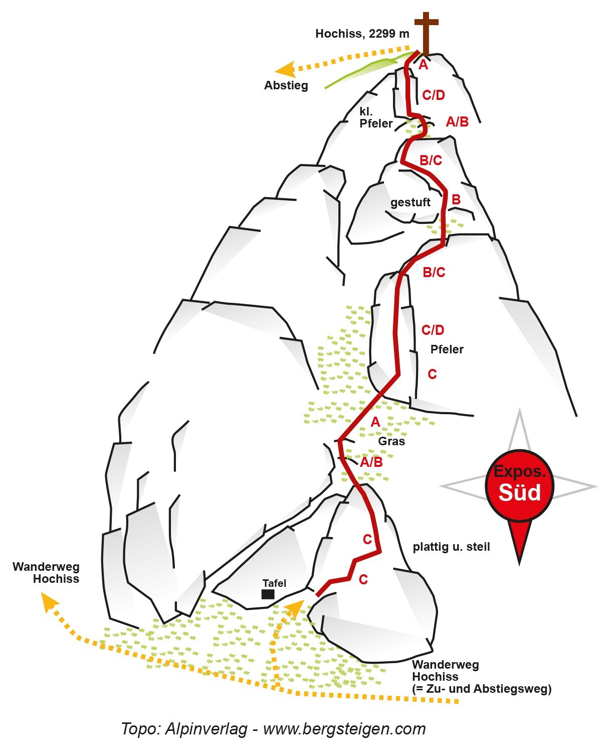 At 2,299m, the Hochiss is the highest mountain in the Rofan mountains and offers unique rock. The most impressive section is the summit face.