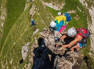 The Achensee 5-summit via ferrata offers steep ferrata passages and hiking sections over a length of 2km. It connects 5 peaks with routes of varying difficulty.