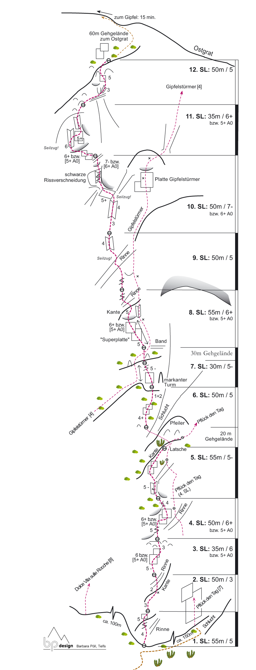Es handelt sich um eine alpine Kletterroute. Alpine Erfahrung und