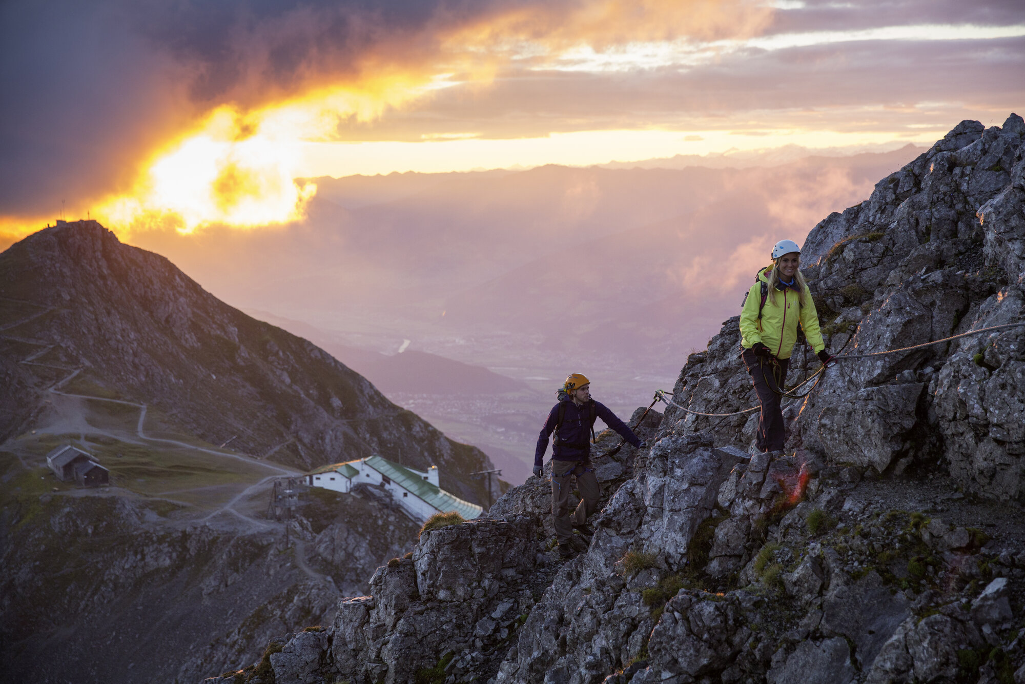 - Innsbruck via ferrata A breathtaking view over Innsbruck, a short, cable car-supported approach and a beautiful ridge climb in the limestone - these are the ingredients that make the Innsbruck via ferrata on the Nordkette one of the most popular in the region. The first part, which leads from the Hafelekar to the Langer Sattel, has a difficulty level of C. Less experienced via ferrata climbers have the option of descending to the middle station of the Nordkette cable car. The second part is more challenging and leads over a suspension bridge to the Frau-Hitt saddle.