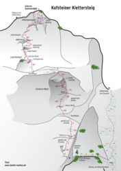 Attention: The Kufsteiner Klettersteig is a long and demanding via ferrata in very alpine terrain. A good endurance and sure-footedness are basic requirements for this tour. It is recommended to plan 2 days for the tour, including overnight stay!