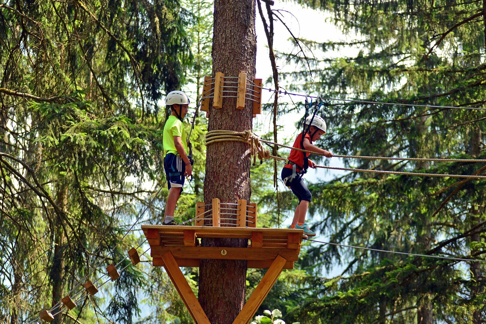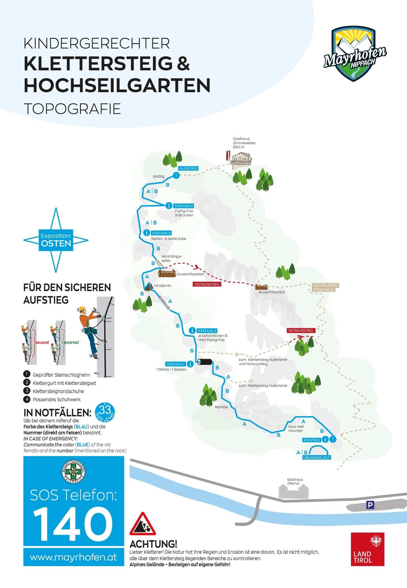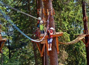 The children's via ferrata in the Zillertal is specially designed for families with children aged 6 and older, offering a mix of traditional via ferrata terrain and elements from high ropes courses. The ropes and footholds are accordingly mounted to make climbing easier for children.