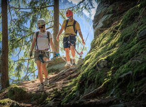 The via ferratas around Mayrhofen and the Gasthaus Zimmereben offer an ideal playground for all ability levels and age groups to let off steam. The short approach and descent routes, the Gasthaus Zimmereben at the exit, and the fantastic views over Mayrhofen round off the climbing experience.