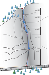 Zustieg: Man folgt der Reschen Bundesstraße und geht unter den ersten beiden Galerien durch. Vor der Dritten klettert man links auf eine kleine Mauer und gelangt so auf die Galerie. Der Einstieg befi ndet sich ca. 200m südlich der Galerie folgend.