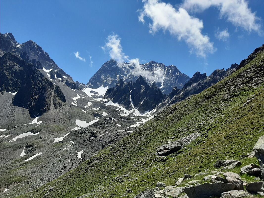 The Madatsch towers lie below the Madatschferner with a view of the Waze and the Schwabenkopf.