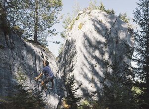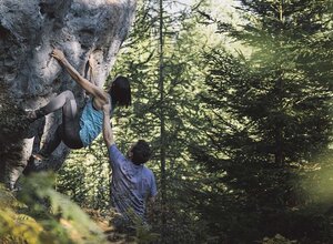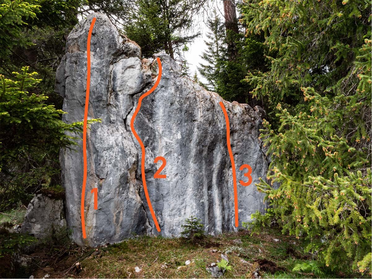 Boulders with perfect high mountain limestone above Imst spread across the forest in pleasant climate due to the shady location: The in 2018 newly established boulder area Hoch-Imst provides a small but fine selection of projects within the levels of difficulty ranging from 5a to 8a with potential for more! The boulders are easily accessible within 10 minutes from the middle station of the Imst Mountain Lifts. The perfect destination for warm summer days thanks to its location at 1,400 metres of altitude.