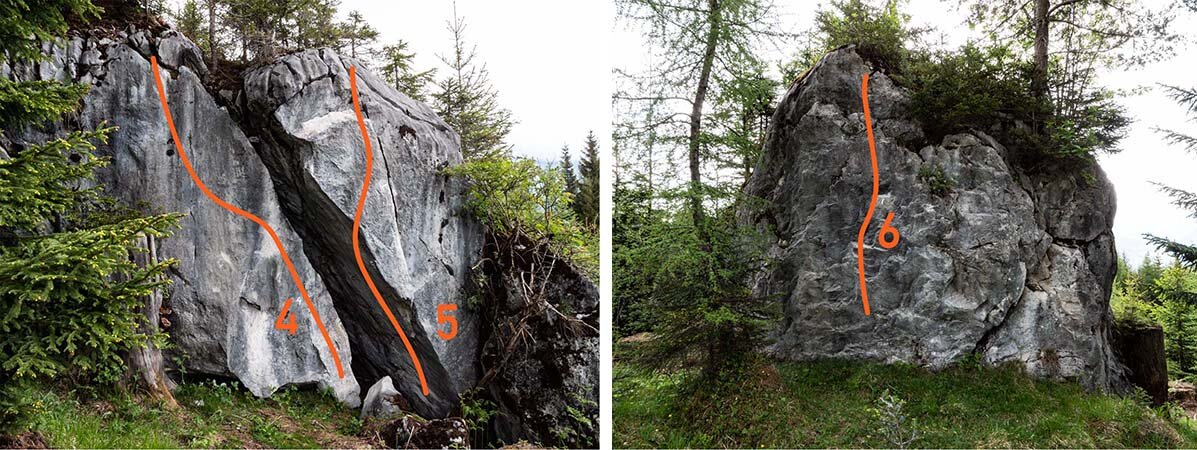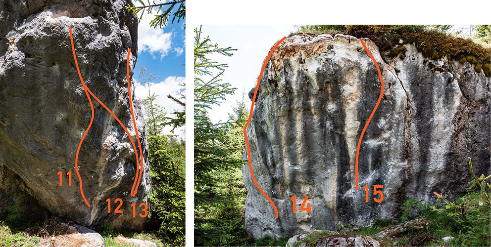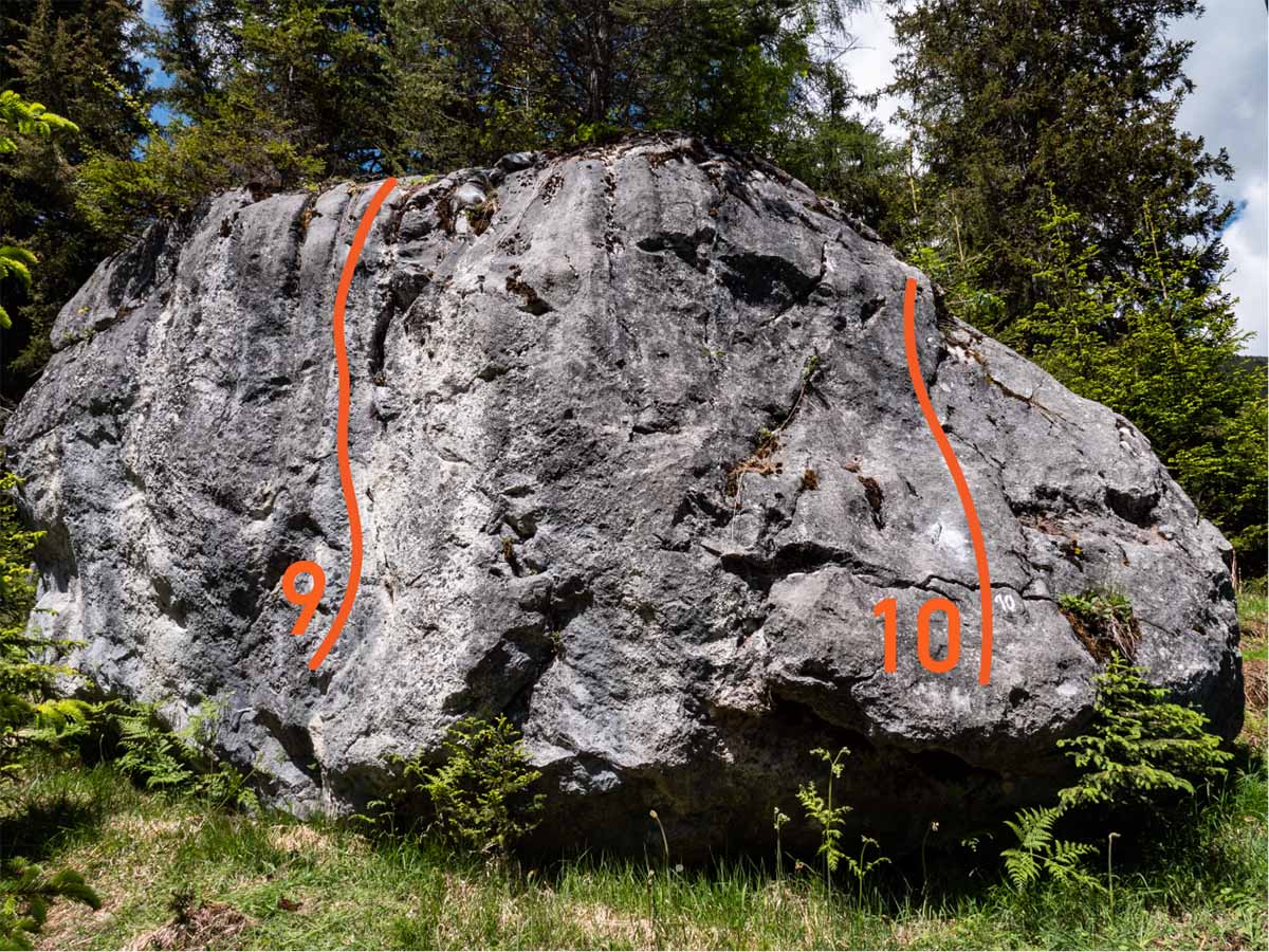 The new bouldering area "Hualig Almeck", which was created in 2018, offers a small but fine selection of projects with level of difficulty 5a to 8a, with potential for more!
