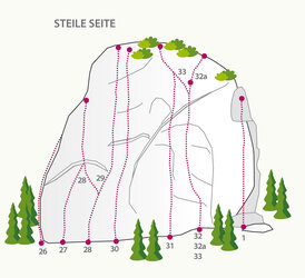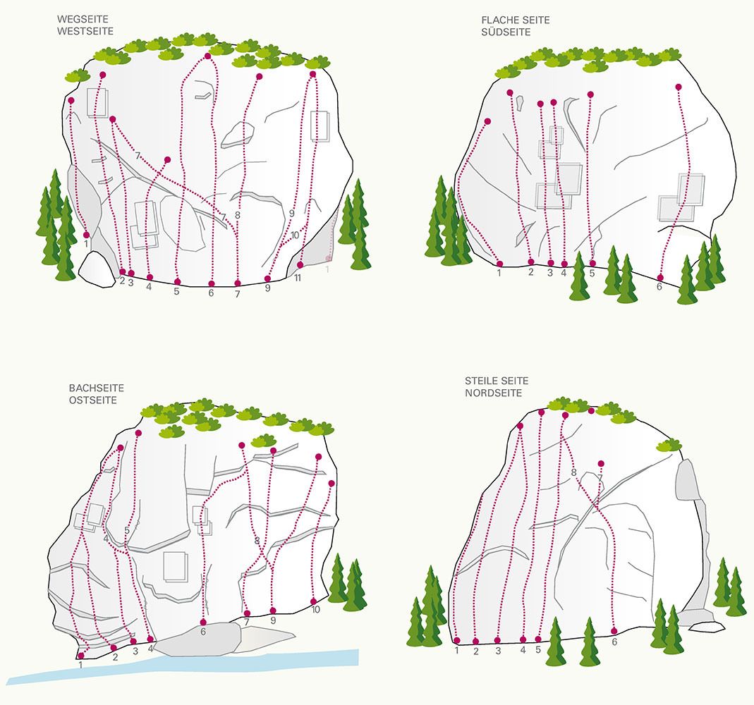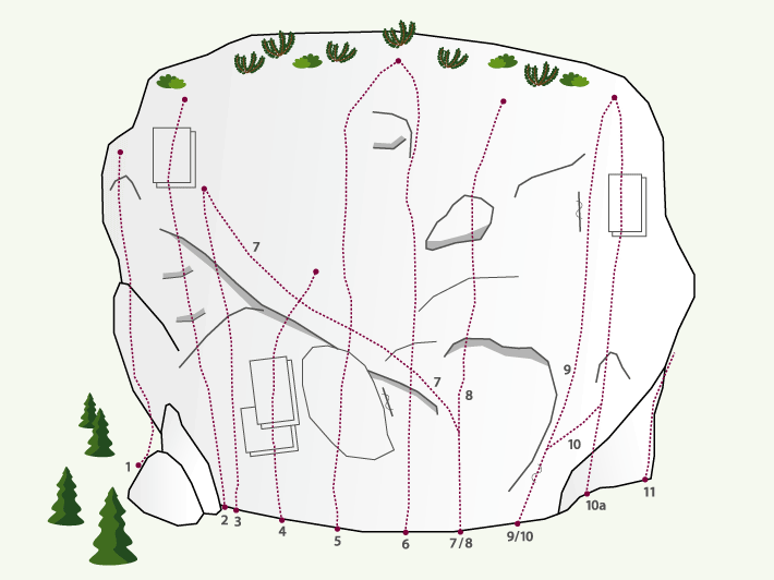 The huge boulders below the managed Latschen Hut were completely renovated in 2007. All routes are equipped with "Umlenk" carabiners. It is especially suitable for advanced climbers and offers beautiful routes in best rock quality in a scenic surrounding.