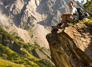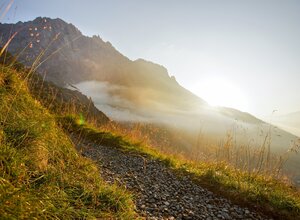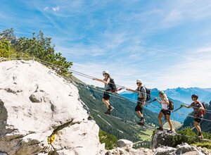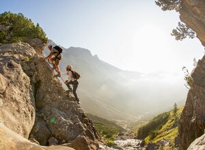 A modern an short sports via ferrata near the Muttekopfhütte. Suitable for families, children and adolescents if appropriately secured. For children the via ferrata's footholds are far apart at some points.