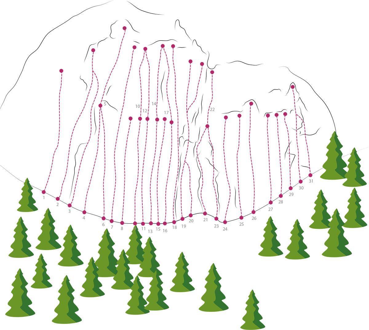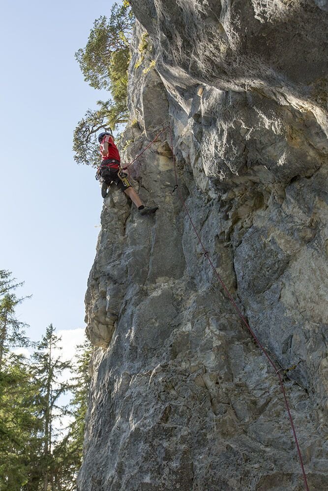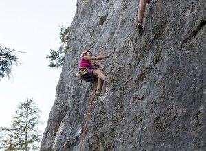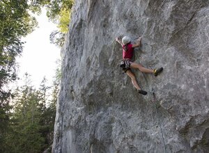 Mauerbogen is a small and very idyllic climbing area with routes of medium difficulty. But be careful: the routes are quite challenging! If you are coming straight from indoor climbing, it's better to start with an easier grade and get used to the rock. The routes are rated rather "tough." However, after getting familiar with the rock, it is a rewarding climbing spot that offers enough challenges for a relaxed climbing day.