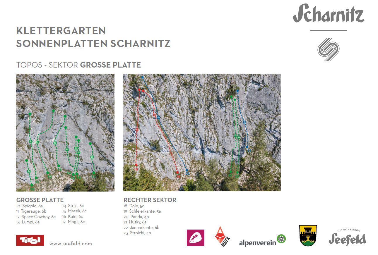 Right in front of the Karwendel mountain range, in Scharnitz, an impressive climbing area has been created, located close to the bypass of Scharnitz. The project was realized in collaboration with Heinz Zak, the municipality of Scharnitz, and the Seefeld Tourist Association.