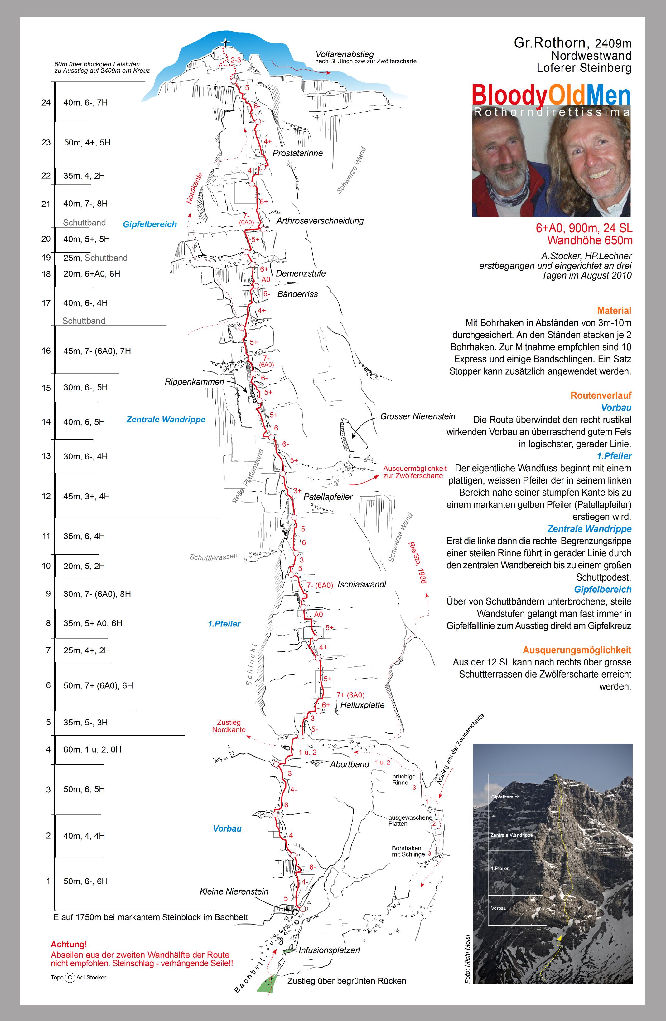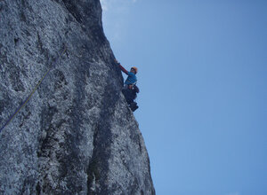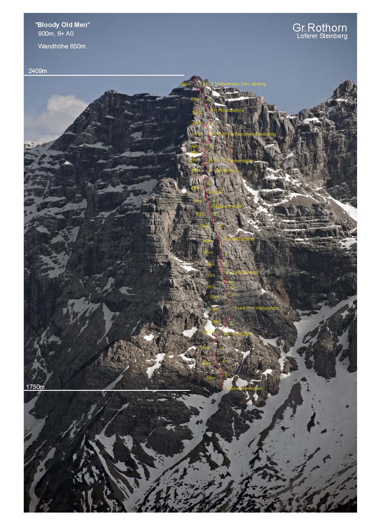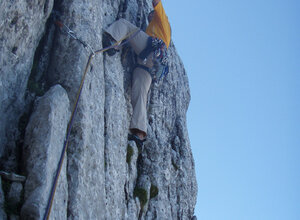 The route leads through one of the most remote areas of the Loferer Steinberge. The alpine activity is enriched by the long access and complicated descent. Nevertheless, it is very well secured. The surprisingly enjoyable climb at the beginning, the first buttress an in the central area of the wall is followed by a rather rustic area around the summit along steep rock faces with a perfect exit at the summit cross.