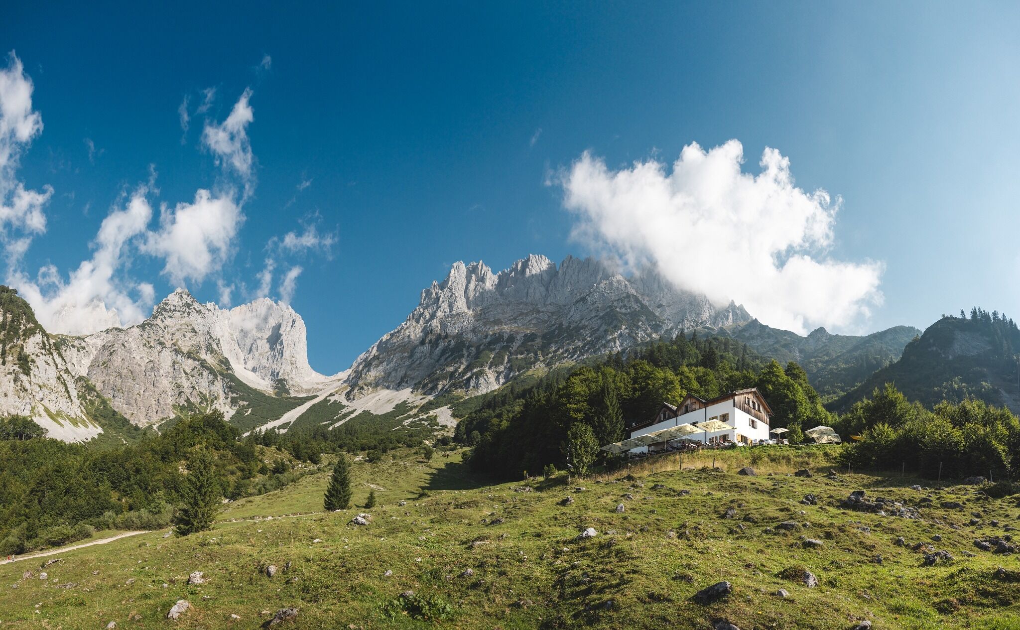 If you’re coming on the B178 from St. Johann, take the Ellmau exit and continue straight ahead until the Bauhof junction (green signposts towards Kaisergebirge/Wochenbrunn). Turn right here and immediately right again. Now follow the toll road till you reach the Wochenbrunner Alm car park.