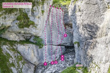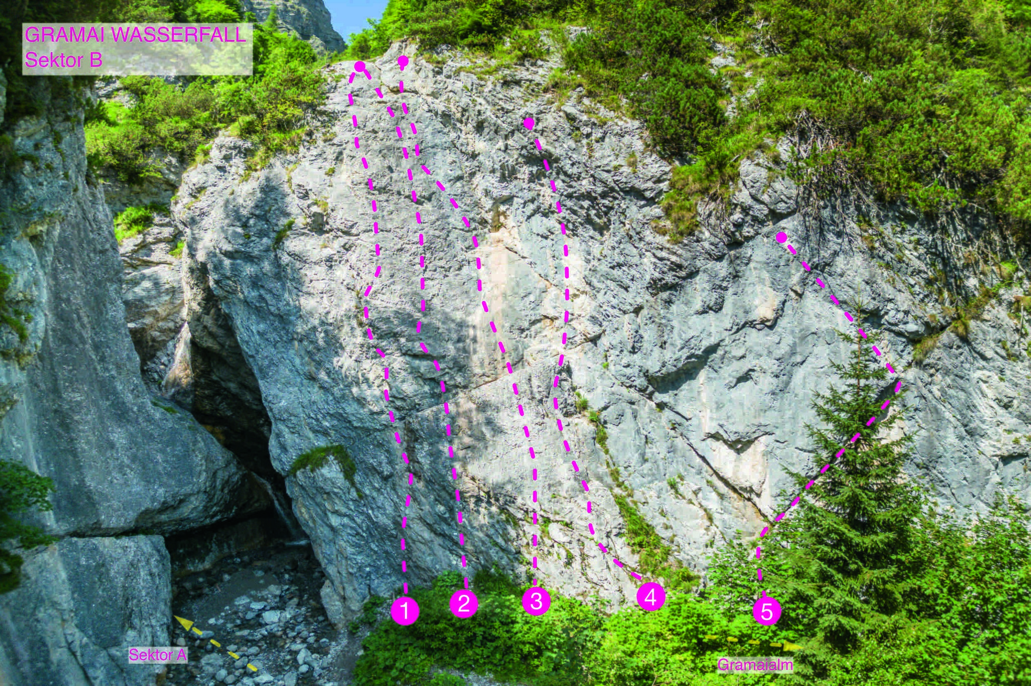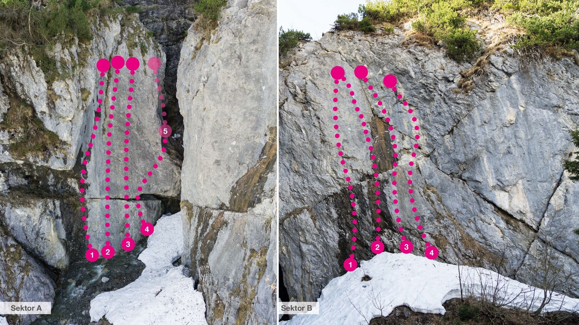 Wenig abgekletterter Sektor; am Saisonbeginn kann speziell an den Ausstiegen noch loses Gestein herumliegen. Es empfiehlt sich einen Helm zu tragen.