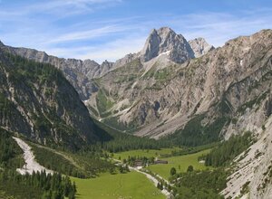 Mit dem PKW zur Gramai Alm. Ab Pertisau am Beginn des Naturpark Karwendels führt eine Mautstraße zur Gramai Alm (geöffnet bis 9. November 2025). Man wandert von der Gramai auf gutem Wanderweg ca. 2 Stunden zur Lamsenjochhütte.