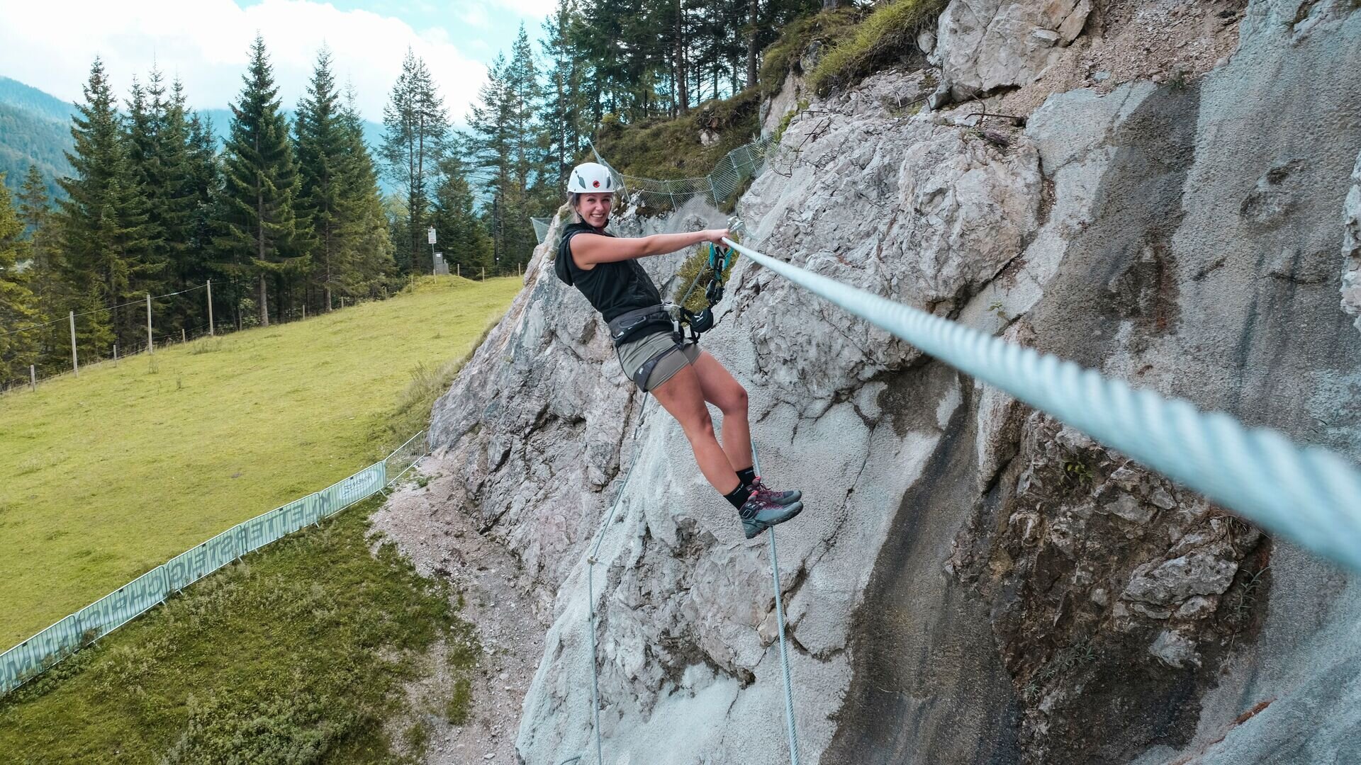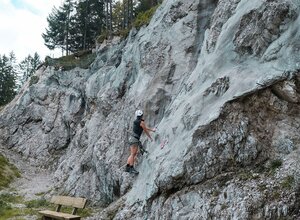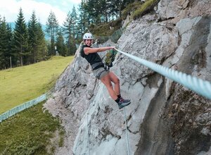Der Klettersteig Christlumsiedlung in Achenkirch ist ein perfektes Übungsgelände im Tal.