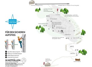Der normale Steig hat eine maximale Schwierigkeit von C/D. Es gibt die Möglichkeit, im oberen Bereich eine Variante mit der Schwierigkeit D/E zu wählen.