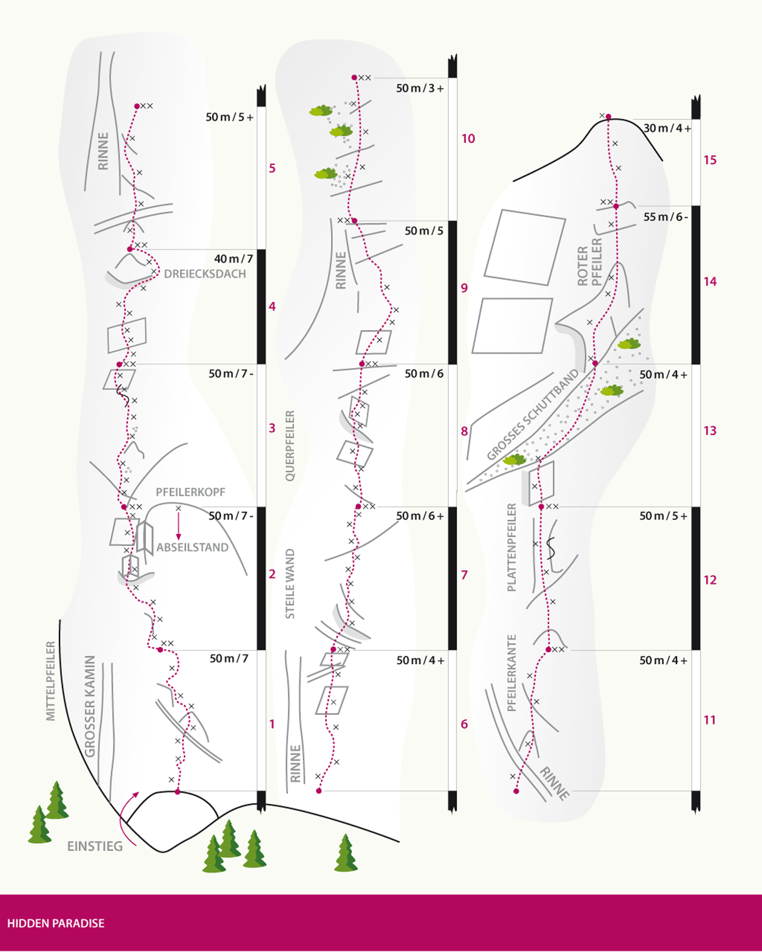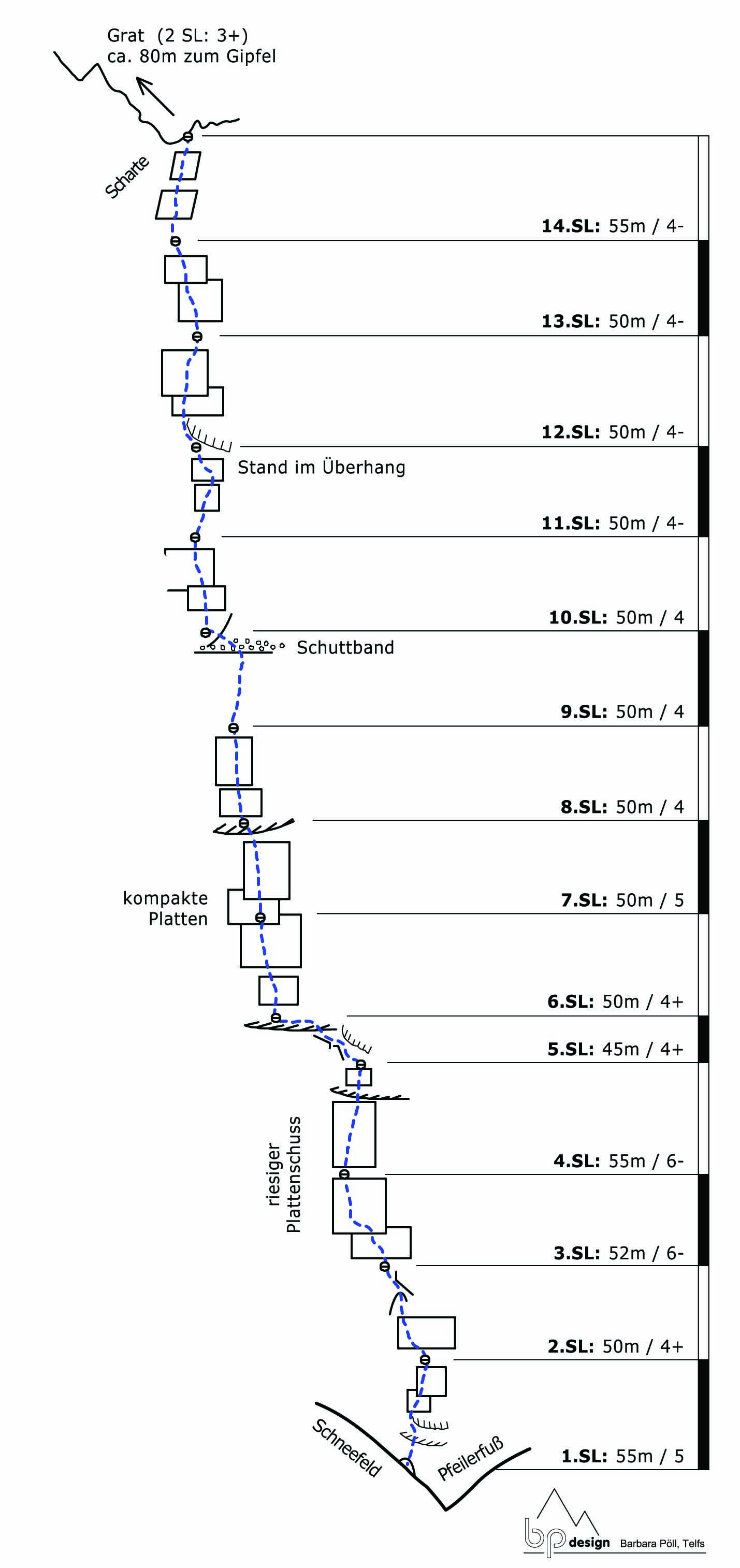 ca. 400 Meter hoher, westseitig gelegener Urgesteinspfeiler, der zum Nordgrat des Schweikert führt (Gsallgratl). Von dort erreicht man in ca. eineinhalb Stunden in teils luftiger Kletterei den Gipfel.