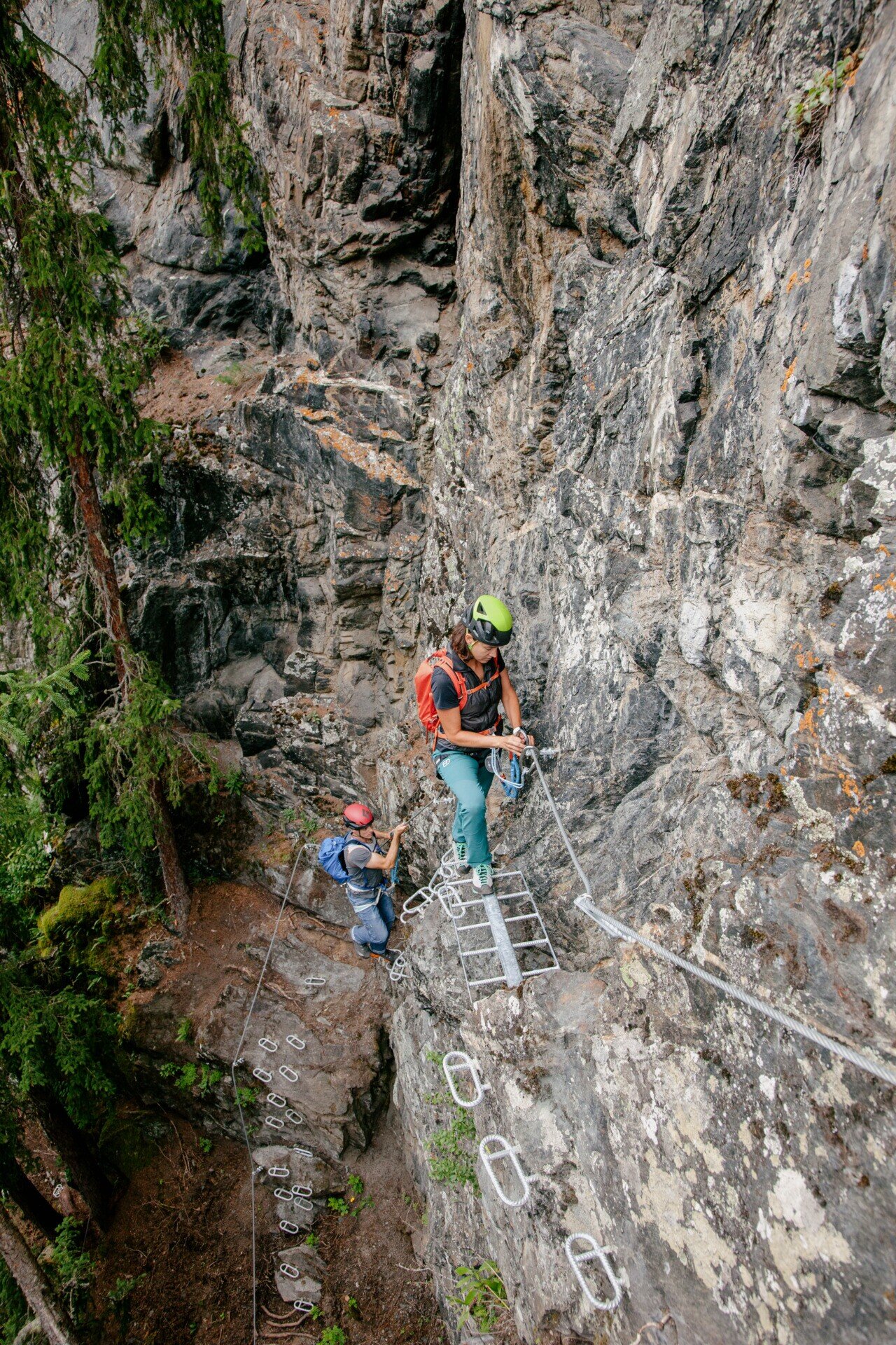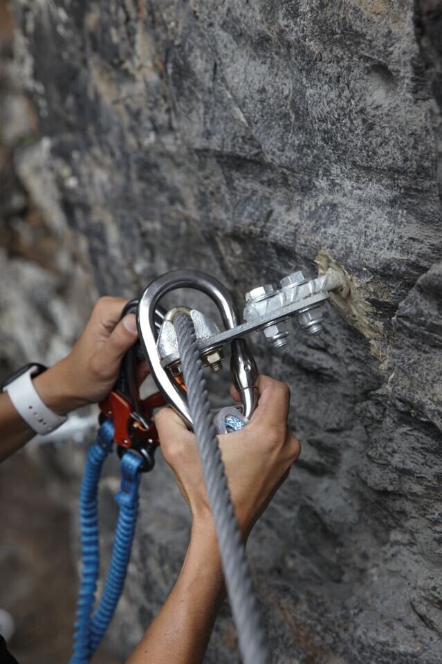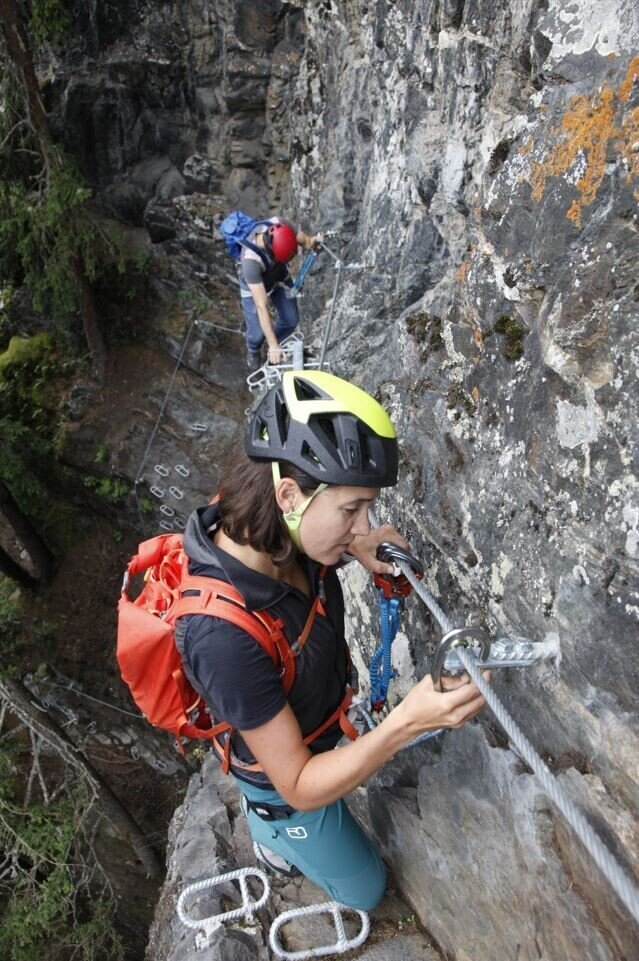 Erfahrene Klettersteiger können auch ein herkömmliches Klettersteig-Set verwenden.