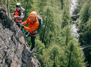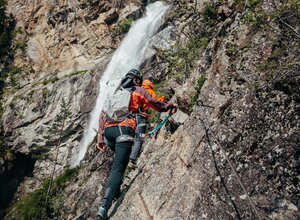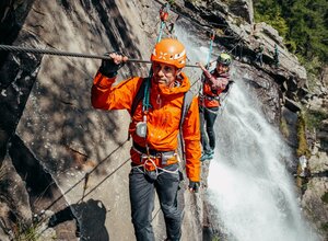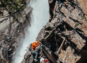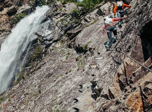 Traumhafter Klettersteig in reizvoller Umgebung, der für spektakuläre Fotomotive sorgt! Toll am Wasserfall angelegt, mit einigen Besonderheiten wie z.B. einem schwierigen Überhang (E) gespickt, der aber umgangen werden kann.