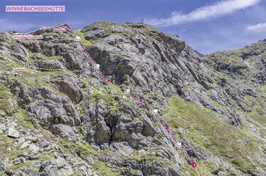 Der Einsteig befindet sich 500 m rechts von der Winnebachseehütte