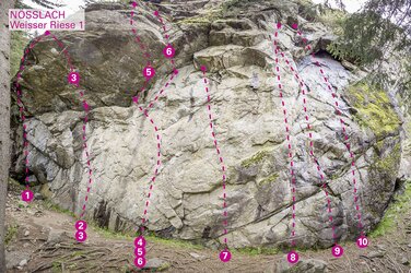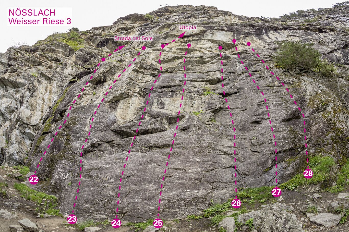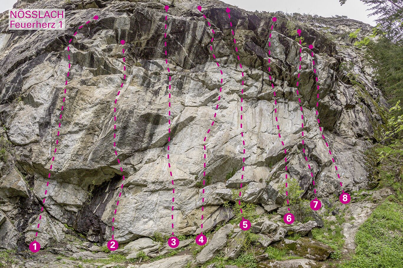 Zustieg: Beim Schranken nach rechts einem kleinen Steig folgend zur bereits sichtbaren Wand.Der Zustieg über die anderen Sektoren ist nicht zu empfehlen.