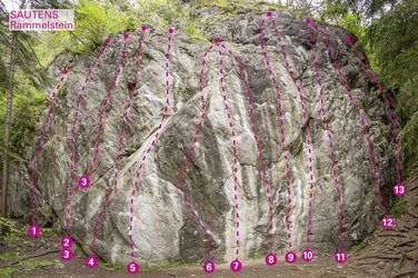 Der Klettergarten Rammelstein kann von zwei Seiten aus angefahren werden. Von der Gemeinde Sautens kommend, immer auf der Straße Richtung "Bundesstraße" folgen. Bei der kleinen Wegekreuzung links bleiben und nach ca. 500 m kommt eine kleine Ausweiche (Sitzbank). Von dort links ca. 2 Minuten zum Felsen im Wald. Von Westen kommend (vor der Ach-Brücke) nach rechts in den Forchet abbiegen, bis ihr bei der kleinen Ausweiche und der Sitzbank ankommt. Parken am Straßenrad möglich.