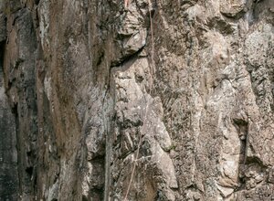 Im linken Wandbereich finden sich vor allem  Riss- und Verschneidungsklettereien.