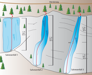 Versteckte Klettermöglichkeiten in der Salvesenklamm. Der Abstieg erfolgt wie der Zustieg.