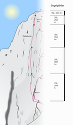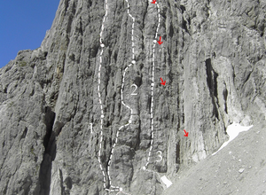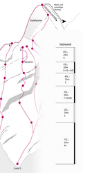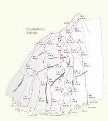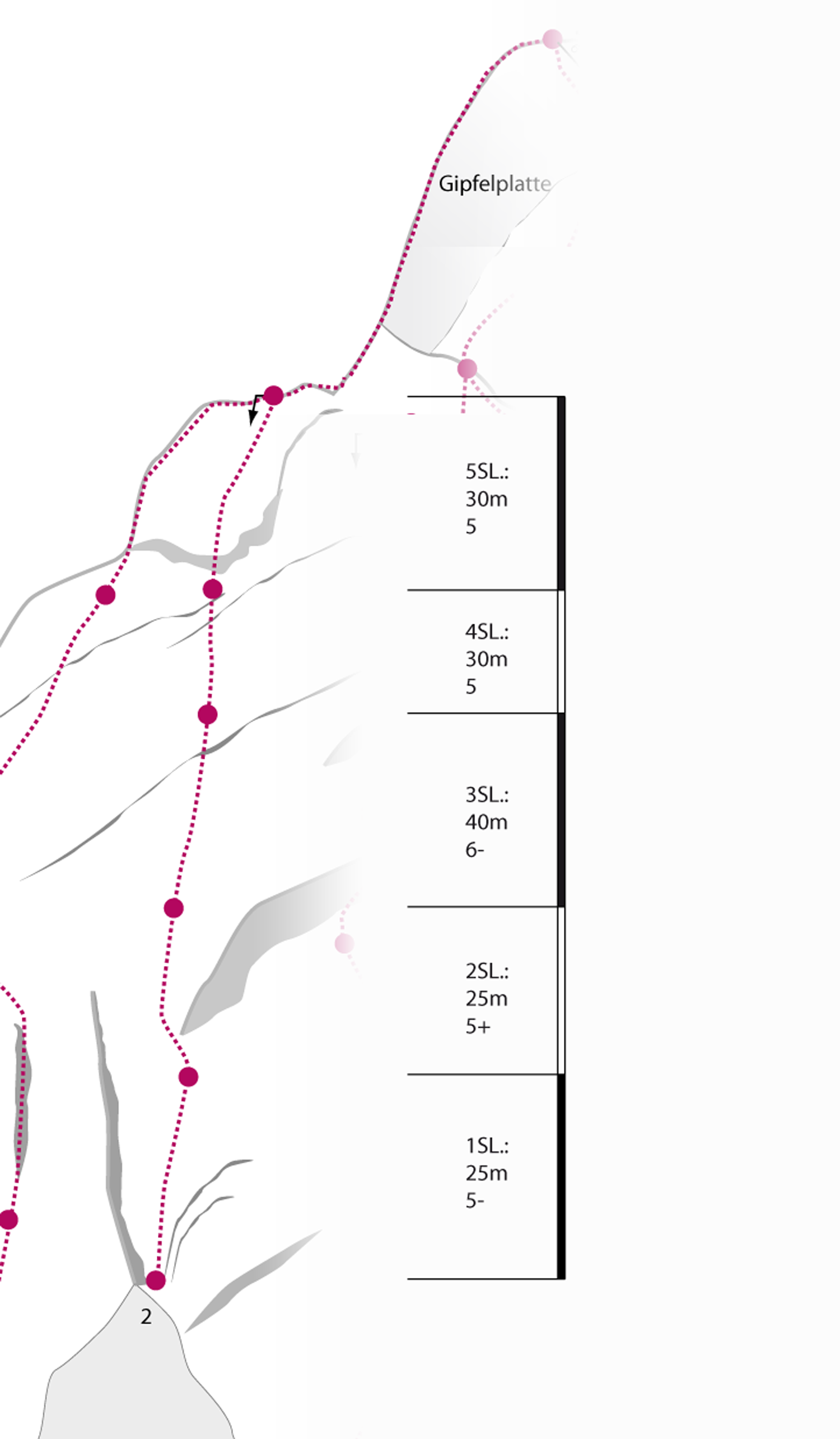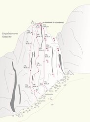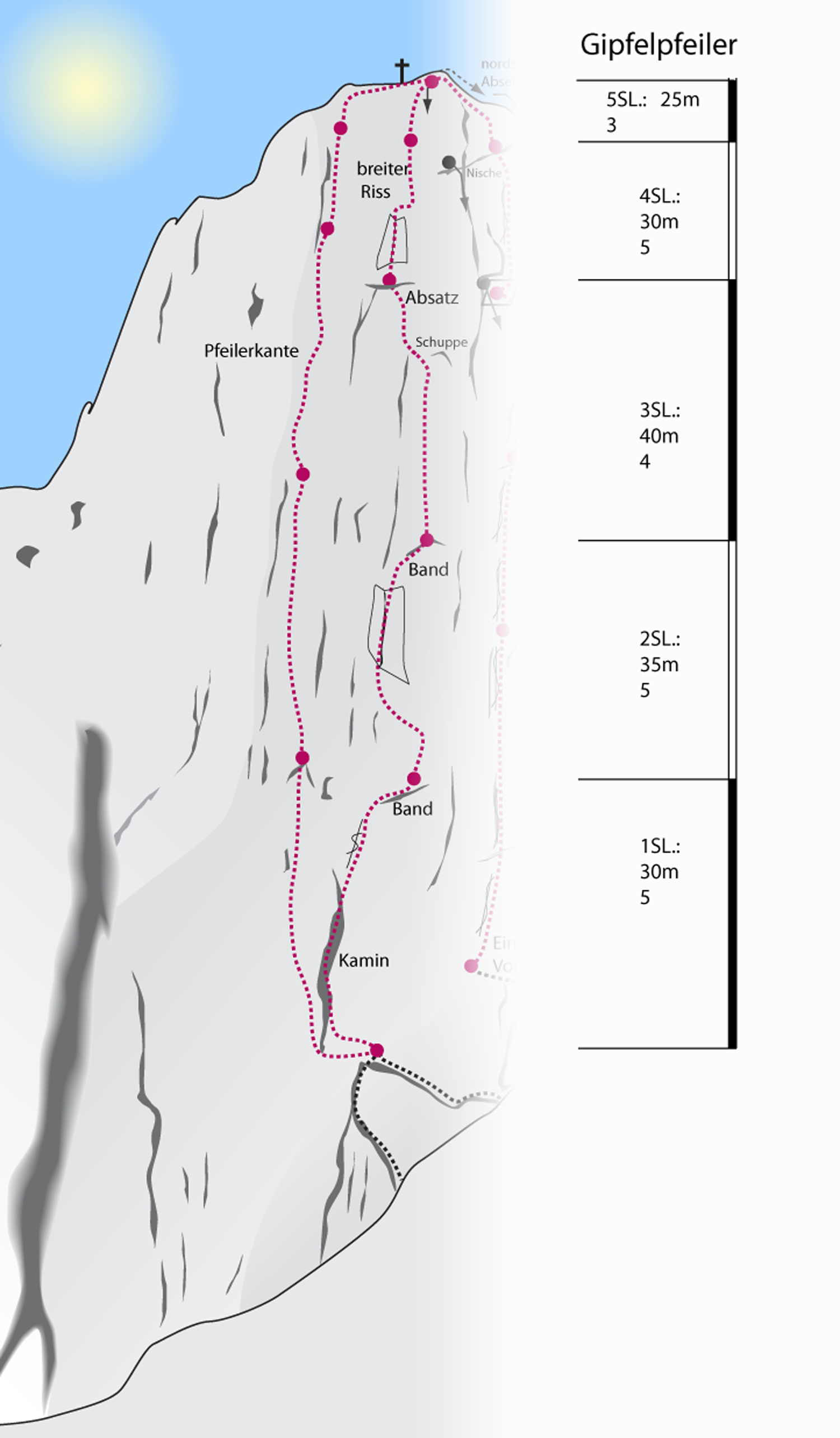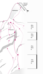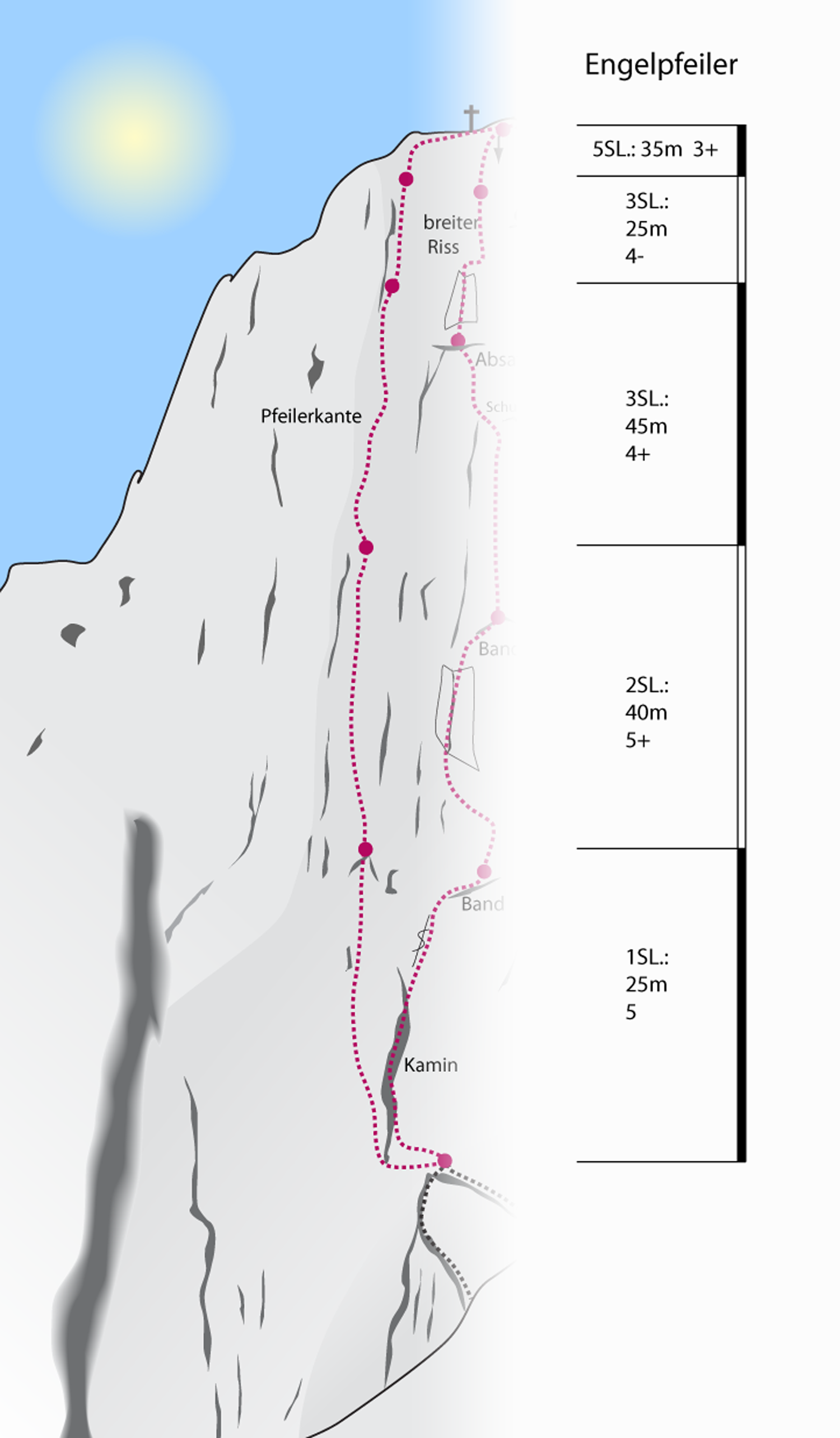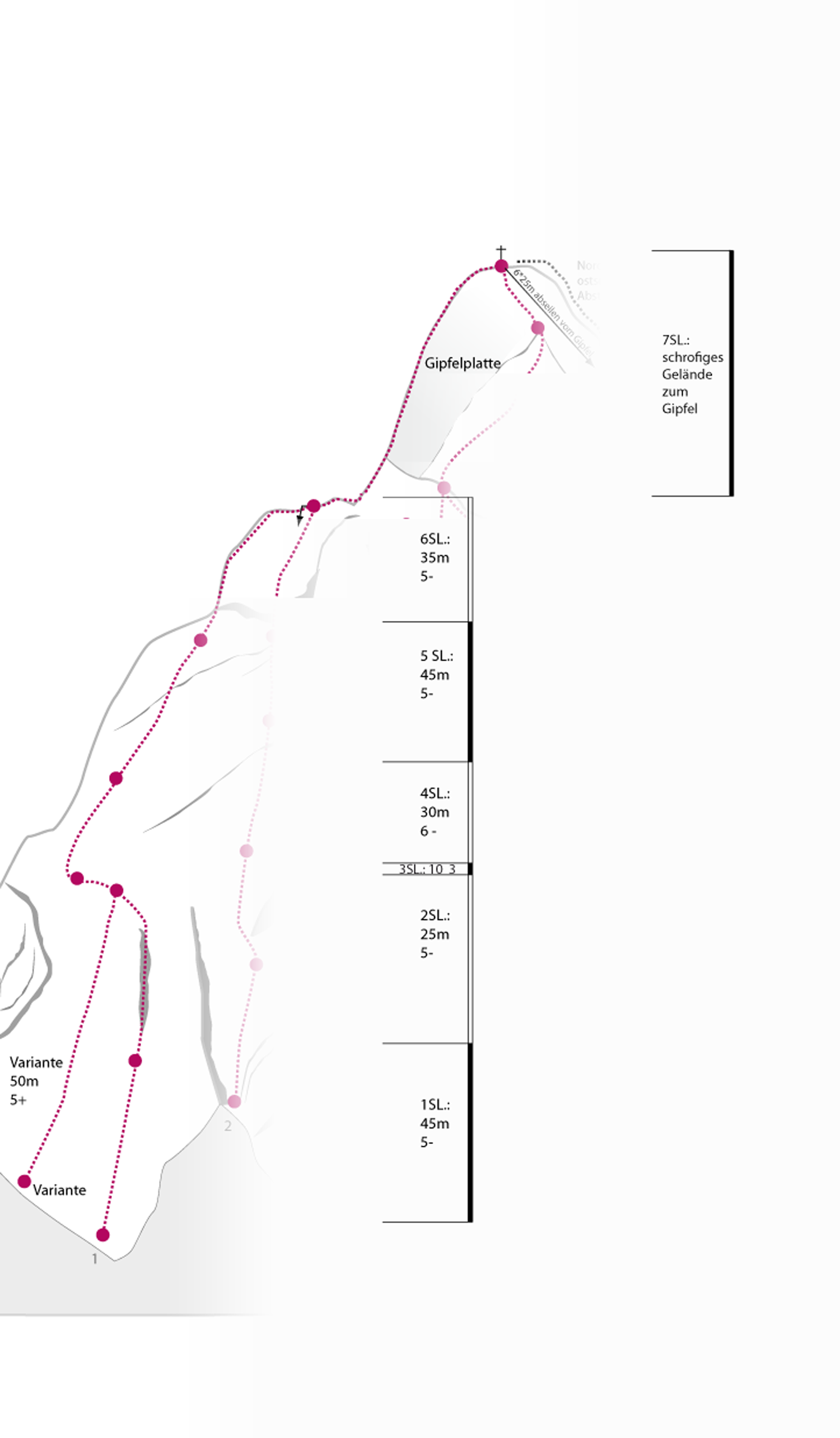 Es gibt 2 Abseilpisten:1. Direkt vom Gipfel über die Ostseite abseilen - Einfachseil 50m