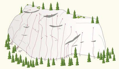 Erschlossen wurde das Klettergebiet vom Quartett Werner Nothdurfter, Alexander Bubik, Kurt Bubik und Patti Rupprich.