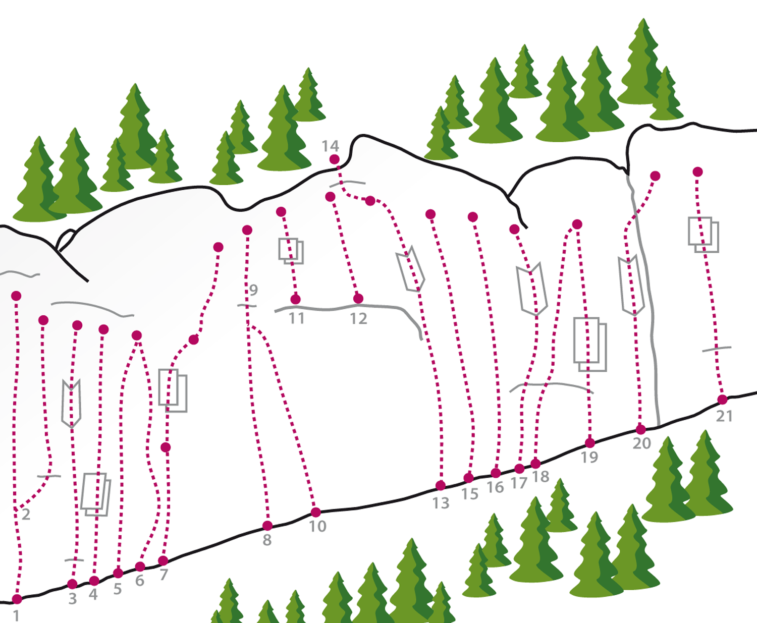 Beste Jahreszeit: Fast ganzjähriges Klettern möglich durch rasches Auftrocknen nach Niederschlägen (Regen , Schnee).