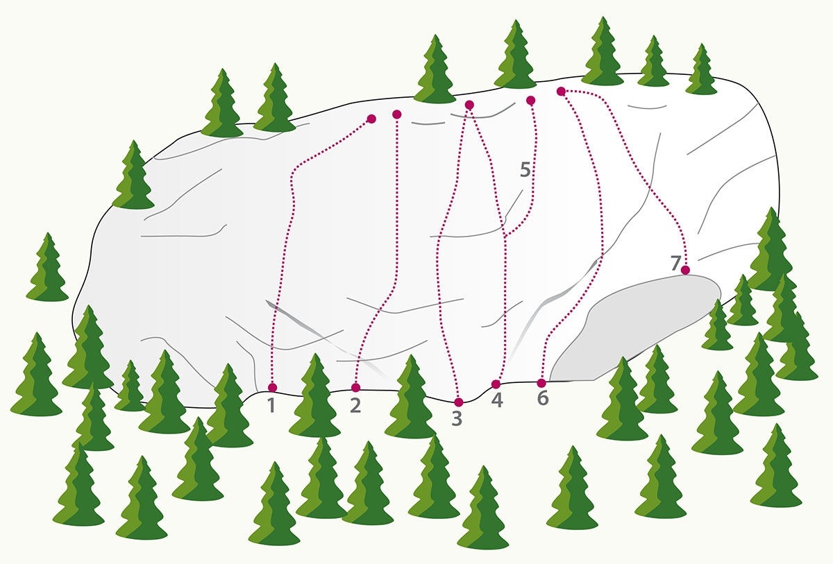 Vom Parkplatz bei der Knappenwelt dem Forstweg etwa 300 Meter in Richtung Happis Hütte, Kneippanlage, (Heilquelle) folgen. Von der Heilquelle rechts auf einen kleinen Steig bis zur sichtbaren Wand (ca. 50m).