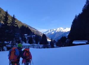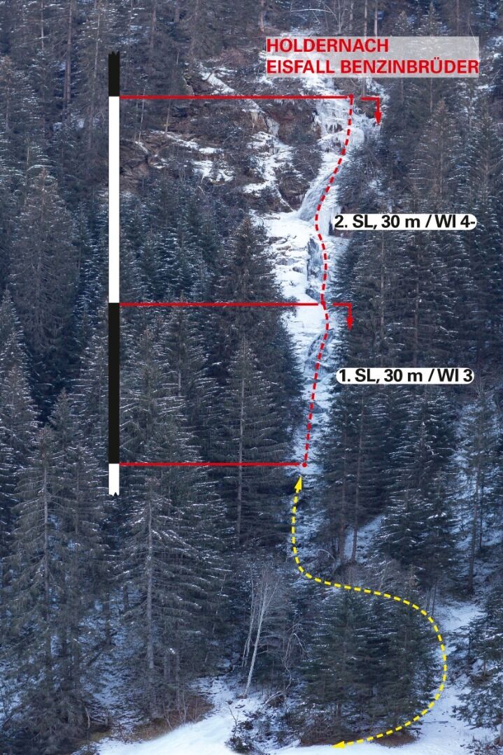 Vom Parkplatz die B 188 überqueren und zur Brücke gehen. Nach dem Eisengitter, über die Wiese zu dem Stadl gehen und dann rechtshaltend am Waldrand entlang bis zum Eisfall aufsteigen.