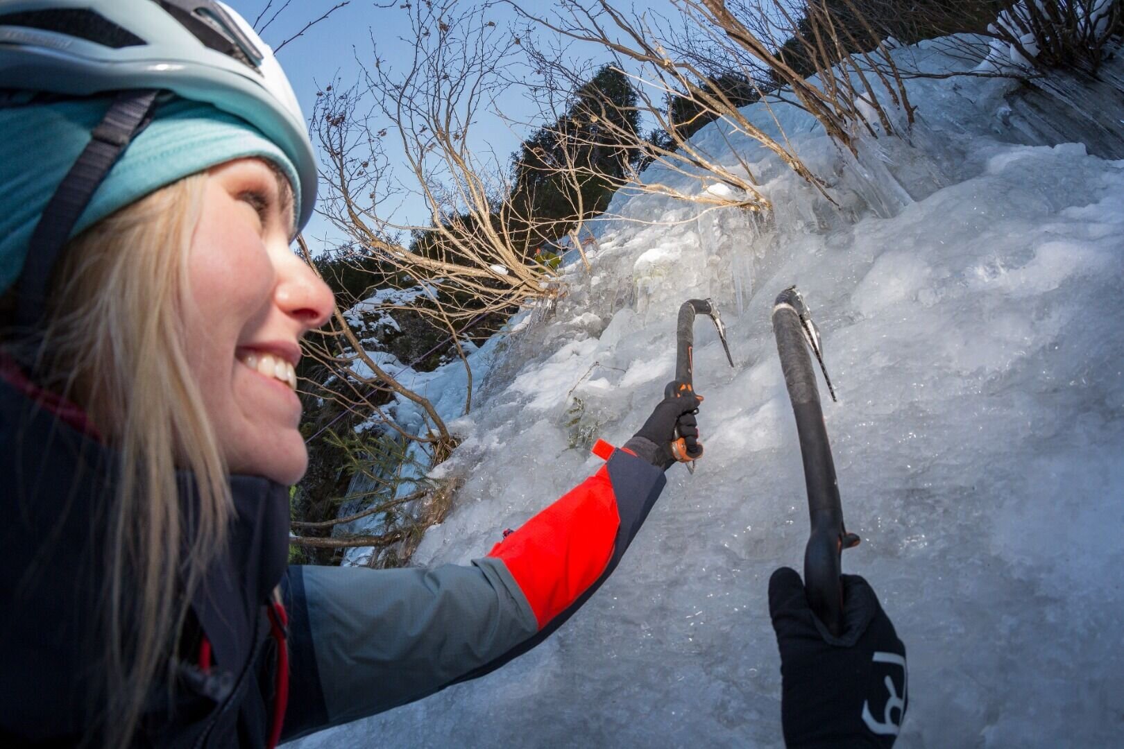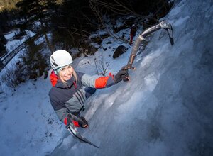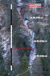Schöner, einfacher Eisfall in einer Rinne, die nach oben hin immer steiler wird. Der Abstieg erfolgt durch Abseilen an Bäumen.