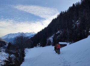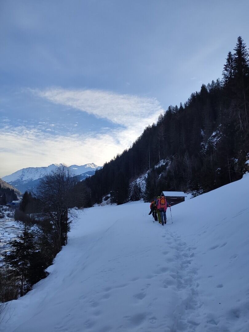 Oder 450 Meter weiter taleinwärts bis zur nächsten Abzweigung fahren, dann rechts bei einem Stadl parken.